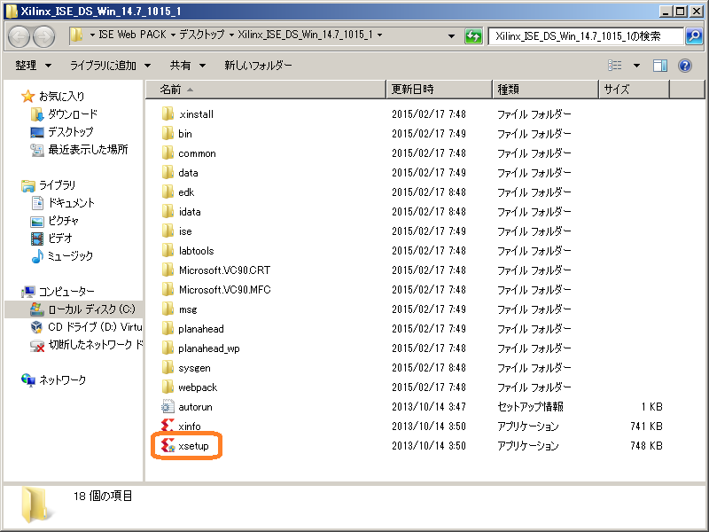 解凍が終わりましたら,下図のようにxsetup.exeを実行します.