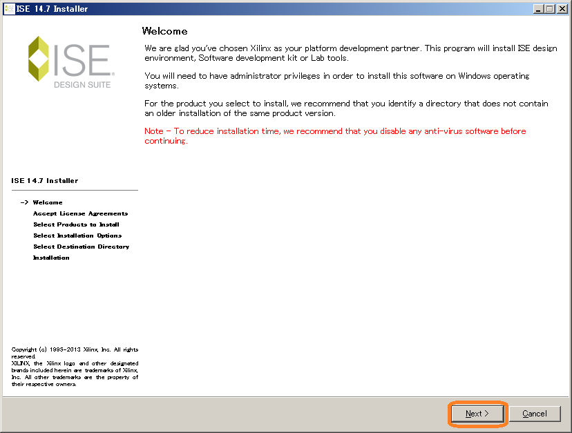 インストールするディレクトリを選んでください.デフォルトではC:\Xilinxにインストールされます.