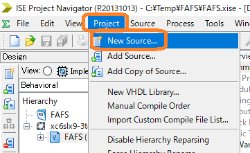 まずはコードが入っているプロジェクトを開きます.プロジェクトファイルであるFAFS.xiseファイルをダブルクリックすると下のようにISE WebPACKが起動します.