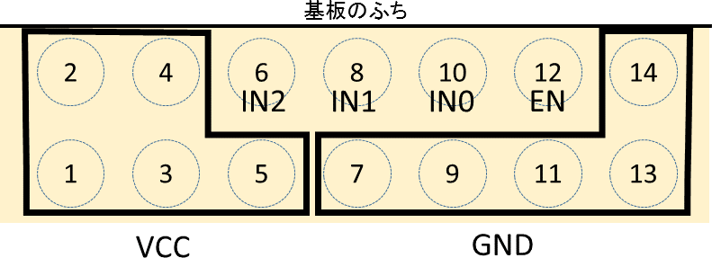 | ピン番号 | デコーダのJ1(入力端子) | セレクタのJ2(出力端子) |