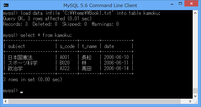 MS Excel で作成したテーブルをMySQLに取り込む方法